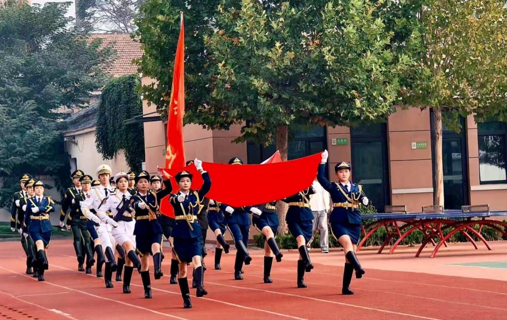作为国凯航空学院爱国主义教育的重要载体,国旗护卫队不仅承担着校内日常及重大活动的升旗任务,还积极走出校园,走进机关、学校和幼儿园,通过庄严的升旗仪式,传播爱国精神。2024年和2025年,国凯航空学院国旗护卫队连续两年在山东省大学生国旗护卫队展示活动中荣获团体三等奖,队员韩广坦、王浩尊分别获评“标兵升旗手”称号,充分展示了队员们过硬的军事技能和良好的精神风貌。